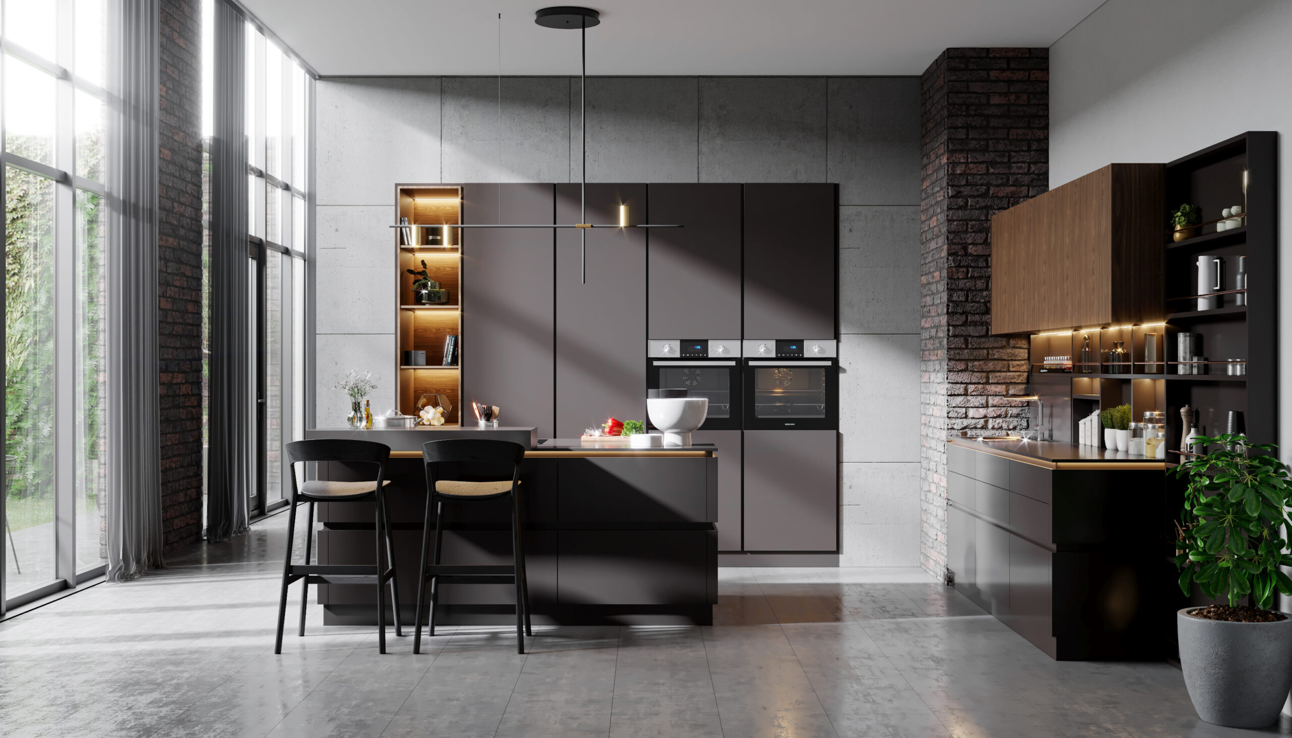 Modern ve minimalist çizgileriyle mat yüzeyler, entegre cihazlar ve şık aydınlatmalı raf sistemiyle küçük alanlarda bile işlevsellik ve zarafeti buluşturuyor.