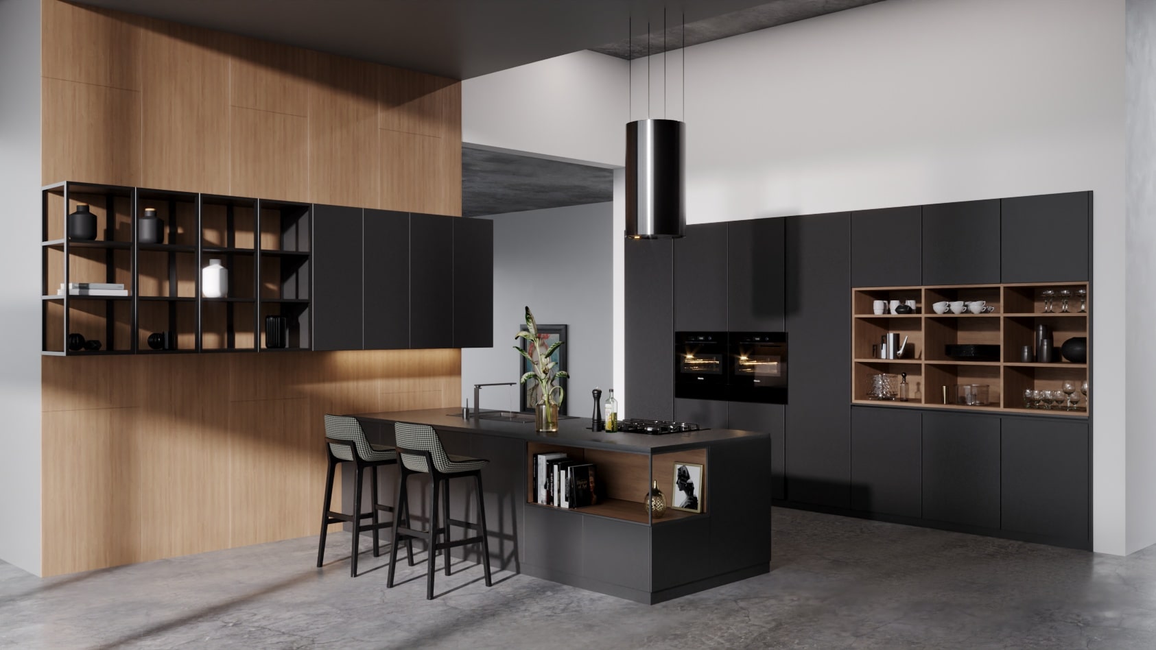 Dionysos mutfağı, sofistike ve zarif bir görünüm isteyenler için özel olarak tasarlanmıştır. Siyah ve ahşap yüzeylerin birleşimi, mutfağa modern bir hava katar. Geniş depolama alanları ve işlevsel detayları ile pratik kullanım sunar.