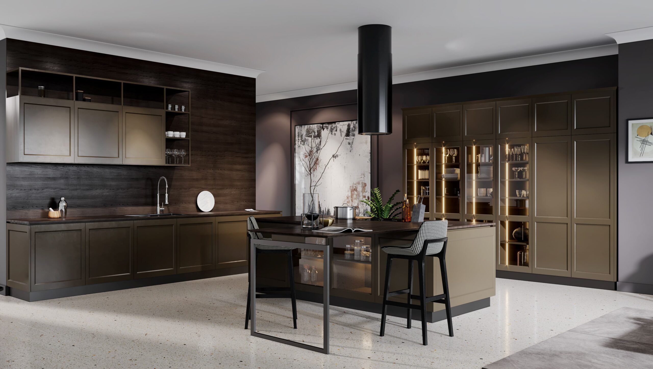 Nestor, koyu renklerin hakim olduğu, sofistike bir mutfak tasarımıdır. Endüstriyel detaylar ve sıcak ahşap dokularla kontrast oluşturarak modern ve güçlü bir atmosfer yaratır.
